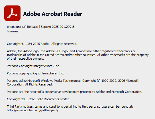 Скачать программу Adobe Acrobat Reader DC 25.001.20918 (543,85 МБ):