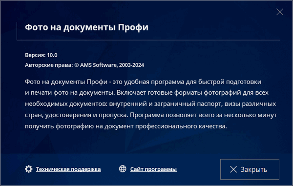Фото на документы Профи - это удобная программа для быстрой подготовки и печати фото на документы. Включает готовые форматы документов всех необходимых форматов: внутренний и заграничный паспорт, визы различных стран, удостоверения и пропуска. Она позволяет всего за несколько минут получить фотографию на документ профессионального качества. Программа имеет простой интерфейс и отличается лёгкостью в освоении. Благодаря высокому качеству обработки и удобству в работе "Фото на документы Профи" может использоваться как в фотосалонах, так и в домашних условиях.
