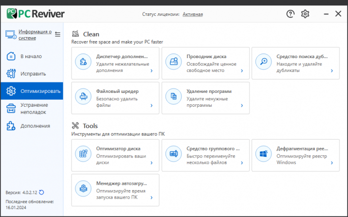 PC Reviver является многоцелевой утилитой, которая проведет диагностику ошибок на вашем компьютере, безопасно восстановит, а также подскажет иные рекомендации по техническому обслуживанию и оптимизации. Программа включает в себя основные инструменты, необходимые для тщательного анализа системы, поиска ошибок для оптимальной производительности и стабильности ПК.