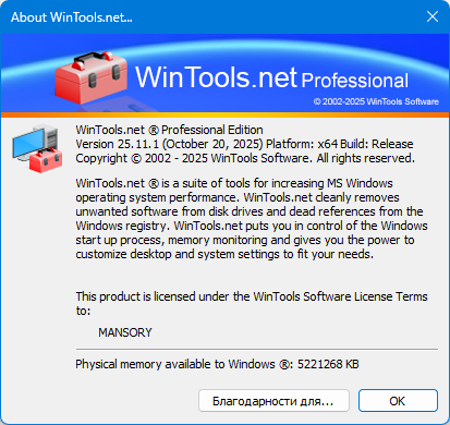 Скачать программу WinTools.net Premium / Professional / Classic 25.11.1 (7,5 МБ):