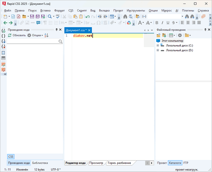 • Подсвечивание синтаксиса для CSS и HTML документов