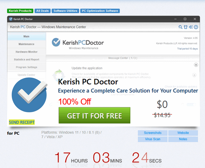 Условия предложения: • Вы получаете бесплатную лицензию Kerish Doctor на 1 год для 1 ПК, только для домашнего использования. • Подарочный лицензионный ключ можно использовать только на одном ПК (любое количество ОС, переустановка ОС не влияет на лицензию и может быть активирована повторно). • Утерянные подарочные ключи не могут быть восстановлены разработчиком. • Публикация подарочного ключа в открытом доступе может привести к его блокировке без предоставления замены. • Массовая активация лицензионного ключа на множестве устройства (более чем на одном ПК) может привести к его блокировке без предоставления замены. • Срок действия подарочного ключа начинается в день его получения.