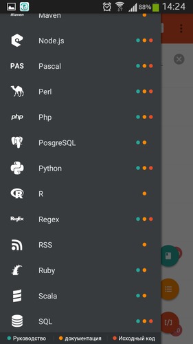 Learn programming - это интерактивный справочник программиста, в котором любой желающий сможет узнать как правильно употреблять ключевые слова в системном коде и для чего они служат. Приложение содержит в себе информацию о таких языках как: Apache Ant, SVG, Angular, C#, Pascal, Asp.net, AWT, Bootstrap, CSS, Ruby, CSS3, CSS2, Groovy, GIT, HTML5, Java, jQuery, Linux, Lua, JSP, Php, Python, Bash, Perl, SQL, VBScript, XSL-Fo, jаvascript, C++, и XSLT.