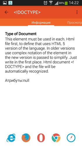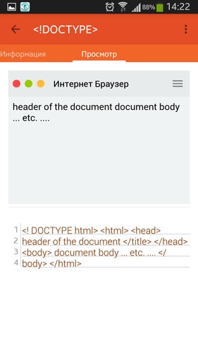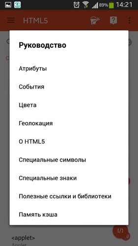 Приложение было создано на базе тезиса "интерактивного учебника интернет-технологий." Оно содержит список всех элементов, используемых в HTML 5 с объяснениями, просмотром в браузере и исходным кодом. Имеются тесты, которые оцениваются в форме статистических таблиц, песочница, где каждый может попробовать написать код, который автоматически отобразится в браузере.