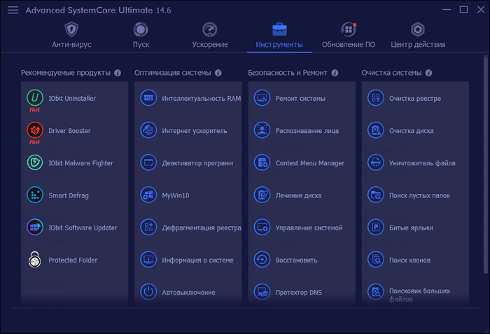 Advanced SystemCare Ultimate - комплексная забота о состоянии вашего компьютера. Антивирус с движком Bitdefender, защита от вредоносных сайтов и загрузок, монитор ресурсов и различные инструменты для оптимизации и настройки системы Windows.