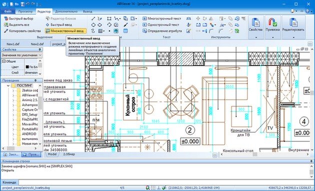 ABViewer - программный продукт для просмотра графических файлов с функционалом профессионального векторного редактора. Поддерживает более 50-ти растровых и векторных форматов файлов и форматов 3D изображений. Позволяет выполнять создание и редактирование чертежей с дальнейшим их сохранением в формат AutoCAD DXF и ряд других векторных и растровых форматов. Обладает многофункциональной системой печати и обеспечивает конвертирование группы файлов.