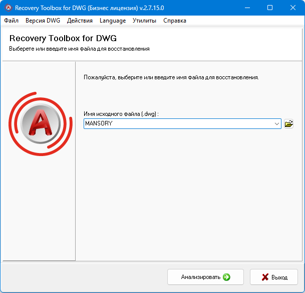 Данные и диски ⇒ Recovery Toolbox for DWG 2.7.15.0