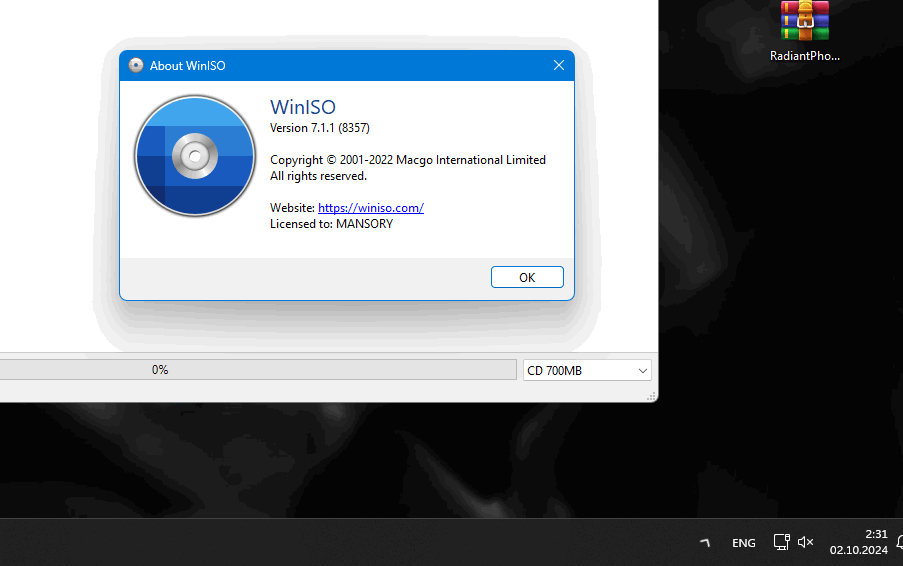 Скачать программу WinISO 7.1.1.8357 (19 МБ): Скачать портативную программу WinISO 7.1.1.8357 (66,3 МБ): Язык интерфейса: мультиязычный/английский/русский