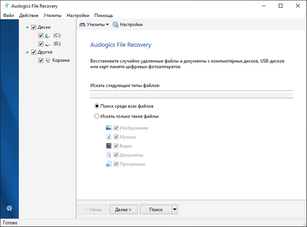 Данные и диски ⇒ Auslogics File Recovery 8.0.24.0