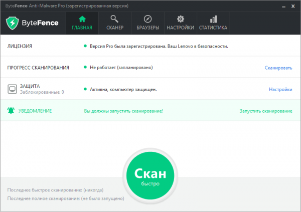 Безопасность ⇒ ByteFence Anti-Malware Pro 3.19.0.0