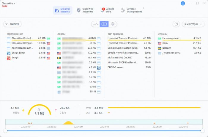 GlassWire - удобная программа для сетевой безопасности, которая визуализирует сетевую активность и блокирует соединения, а также предупреждает пользователей о возможных проблемах безопасности, которые могут быть загружены из глобальной сети Интернет.
