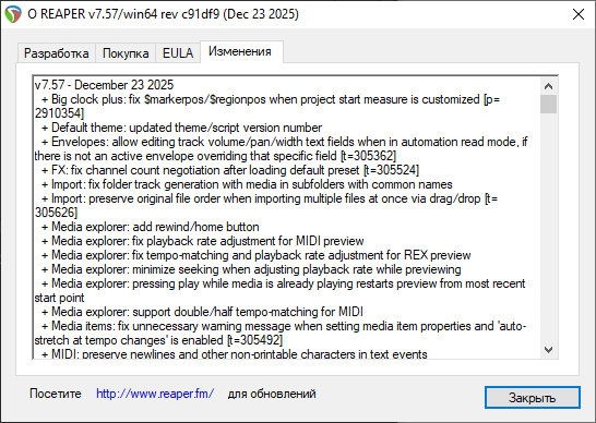 Скачать программу Cockos REAPER 7.55 (31,3 МБ):