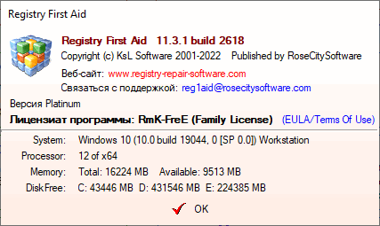 Скачать программу Registry First Aid Platinum 11.3.1 Build 2618 (4,46 МБ):