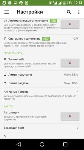 µTorrent - мобильная версия одного из самых популярных torrent-клиентов, с помощью которого можно легко искать и загружать торренты непосредственно на смартфоны и планшеты под управлением Android. Присутствует возможность подписываться на RSS каналы, воспроизводить загруженные медиафайлы, устанавливать ограничение на скорость загрузки и отдачи, вручную задавать папку сохранения файлов, указать номер порта TCP и пр.