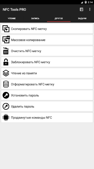 NFC Tools был протестирован со следующими NFC-метками:- NTAG 203, 210, 212, 213, 215, 216