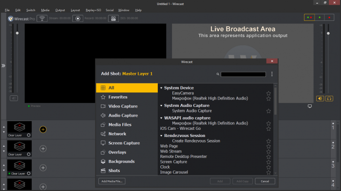 Профессиональный стиль вещания• Несколько пользовательских слоев. Wirecast позволяет применять до 35 слоев при живом композитинге.