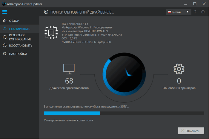 • Удобные функции резервного копирования и восстановления драйверов