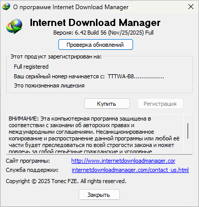 Скачать программу Internet Download Manager 6.42.56 (10,18 МБ):