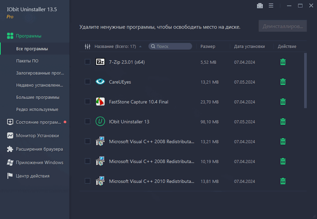 IObit Uninstaller Pro 13.6.0.5 + Portable на русском с активацией для удаления программ
